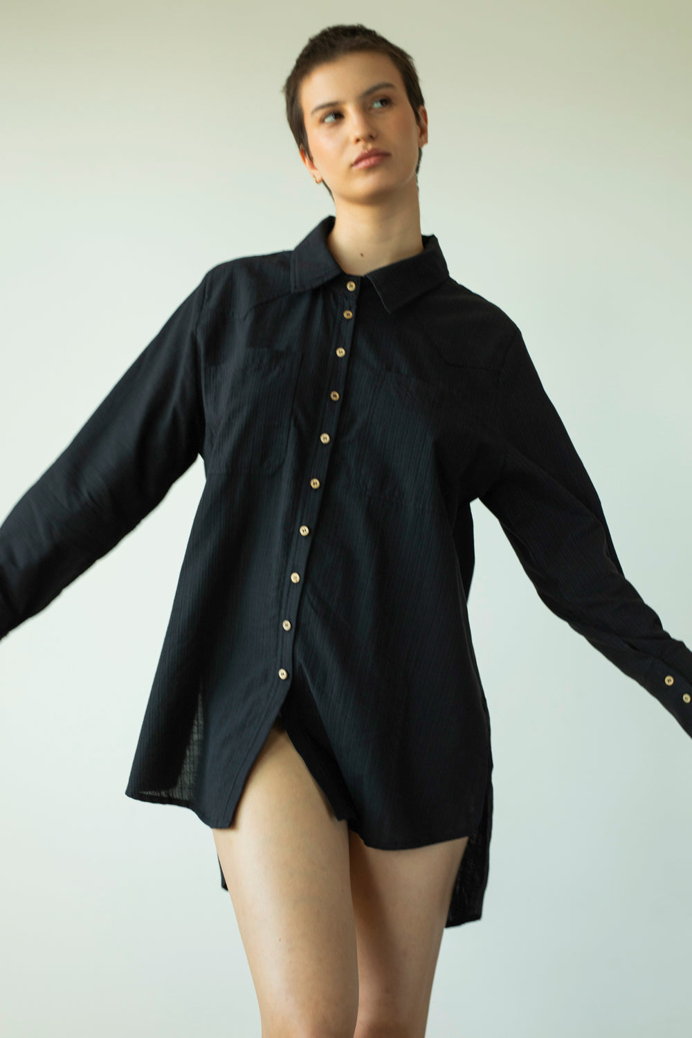 גם חולצה גם טוניקה גם עליונית גם מתאימה לשילובים מתחת לבגדים.