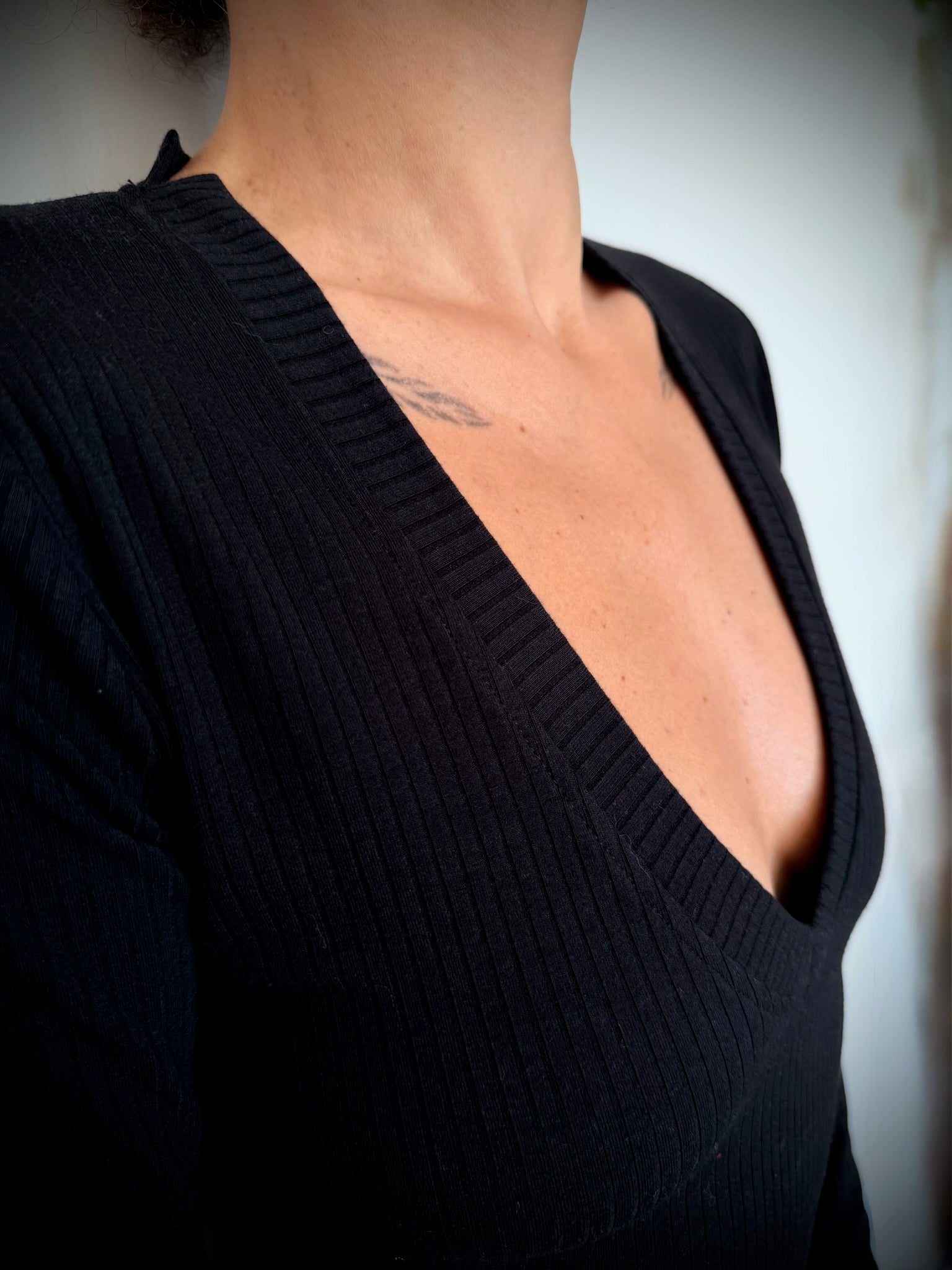 וי עמוק. תפר פרינסס. דיטלס בצווארון.
